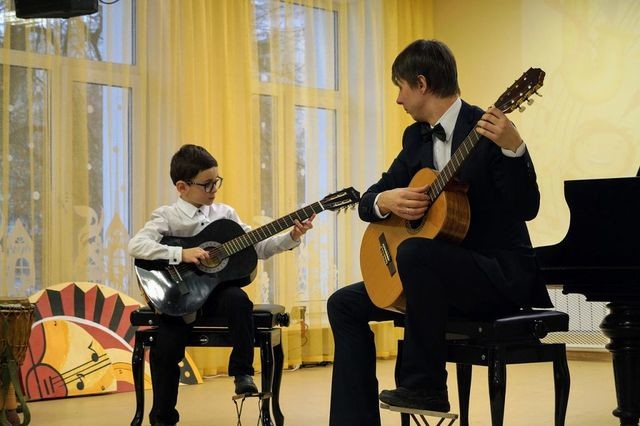 При школе есть концертный зал и выставочное пространство, где ученики могут показать полученные знания и продемонстрировать результаты обучения на музыкальном или художественном отделении.